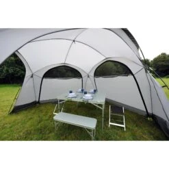 This easy-pitch shelter features multiple doors which can be used to keep out bugs, provide shelter in windy conditions, or offer full access to the sun on hot summer evenings. Kit your shelter out with camping chairs, tables, and other useful storage options.