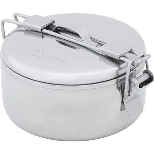This versatile pot is great for both cooking and storage. The hinged handle flips over the fitted lid to lock it in place. Lids also have top handle tabs.