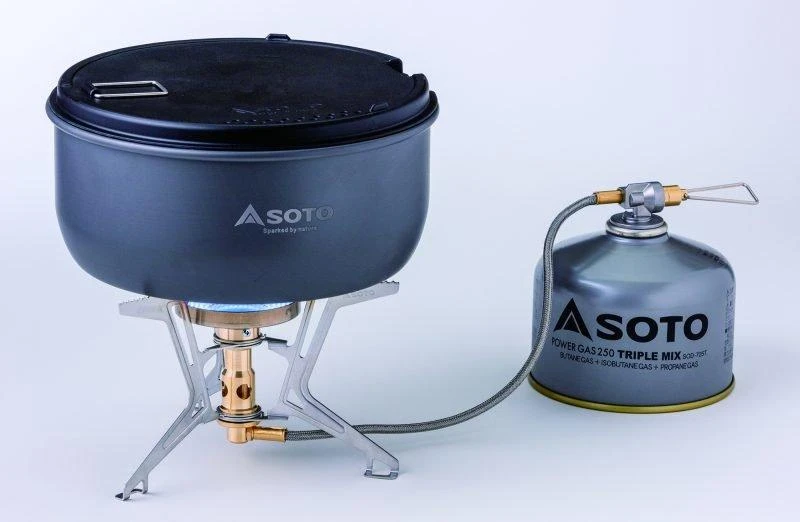 The Fusion Trek Stove is Soto’s first micro regulator detachable stove that works with outdoor gas canisters. The concave design of the burner head creates the effect of a built-in windscreen providing excellent performance under wild and windy conditions. The Burner head is uniquely designed to produce over 300 sub-flames. The stove burns quietly whilst producing a strong flame, 3-leg support sits firmly on rough ground.